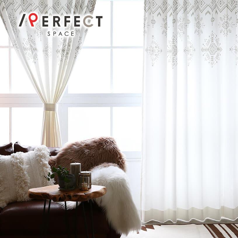 遮光2級かわいい西海岸風カーテン 白 カイサー 扇un カーテン通販テレマカシイ おしゃれなアジアン専門店